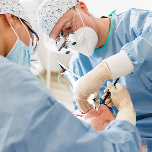 Für die feste Versorgung eines unbezahnten Kiefers werden mehrere Implantate strategisch im Kieferknochen verankert. Diese Implantate dienen als stabile Pfeiler für eine Brücke, die dauerhaft befestigt wird. Die Anzahl der benötigten Implantate hängt von der individuellen Kiefersituation und der geplanten Versorgung ab.